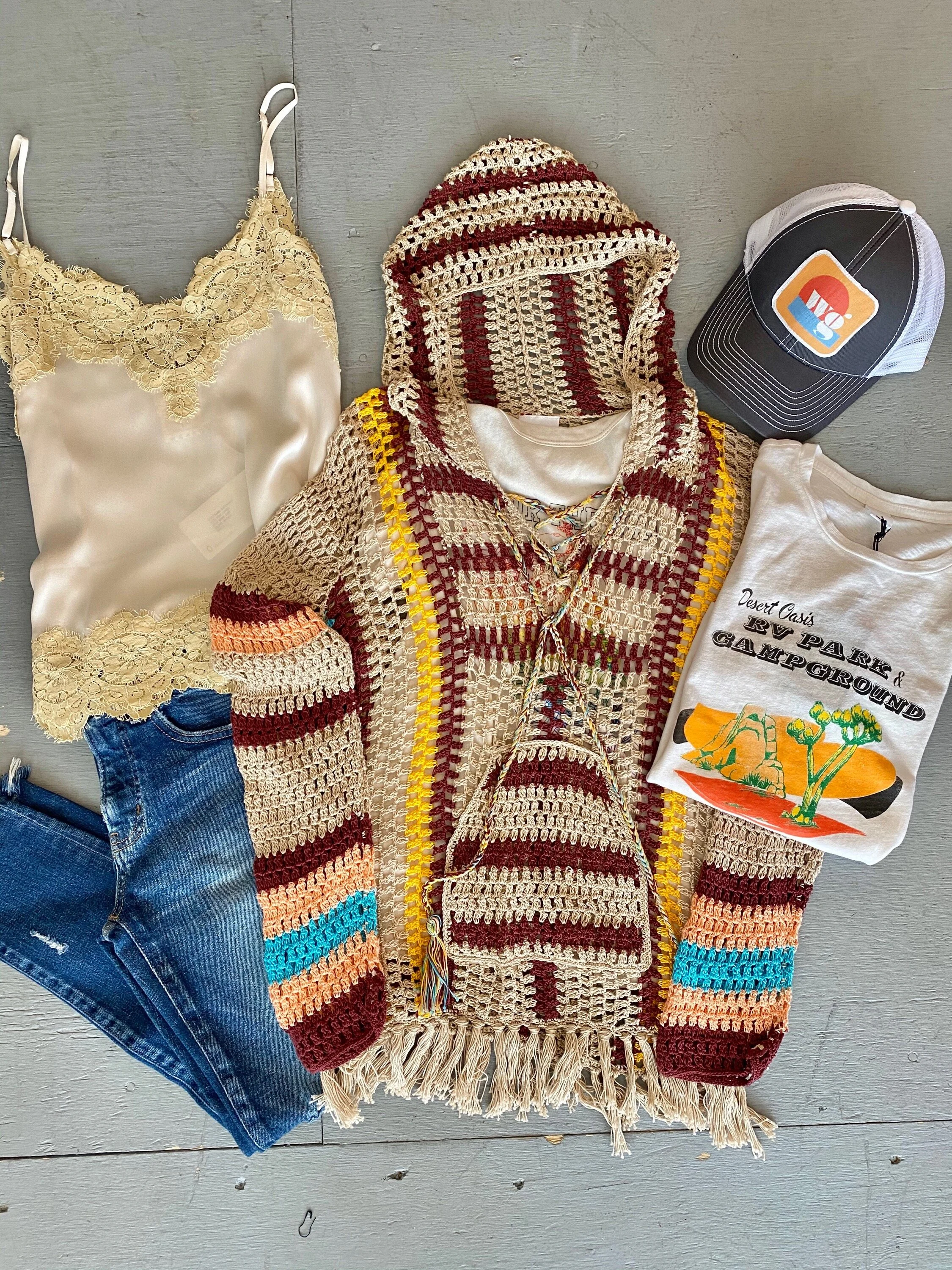 Regardless of the season, jeans are still a staple when it’s cooler. For the day, style with a graphic tee (even layered with a crochet top) and hat. Then, swap at night with a sexy camisole.