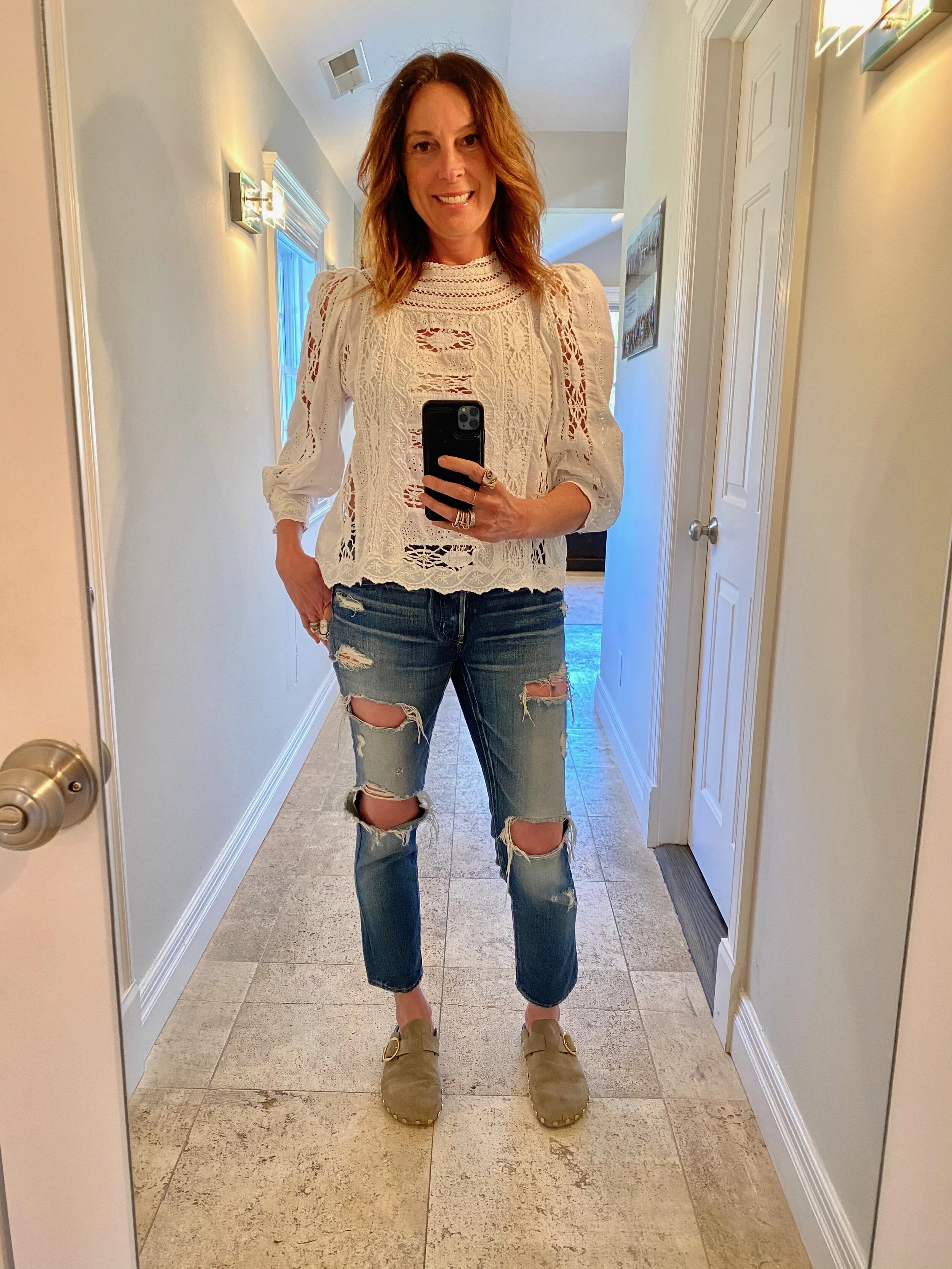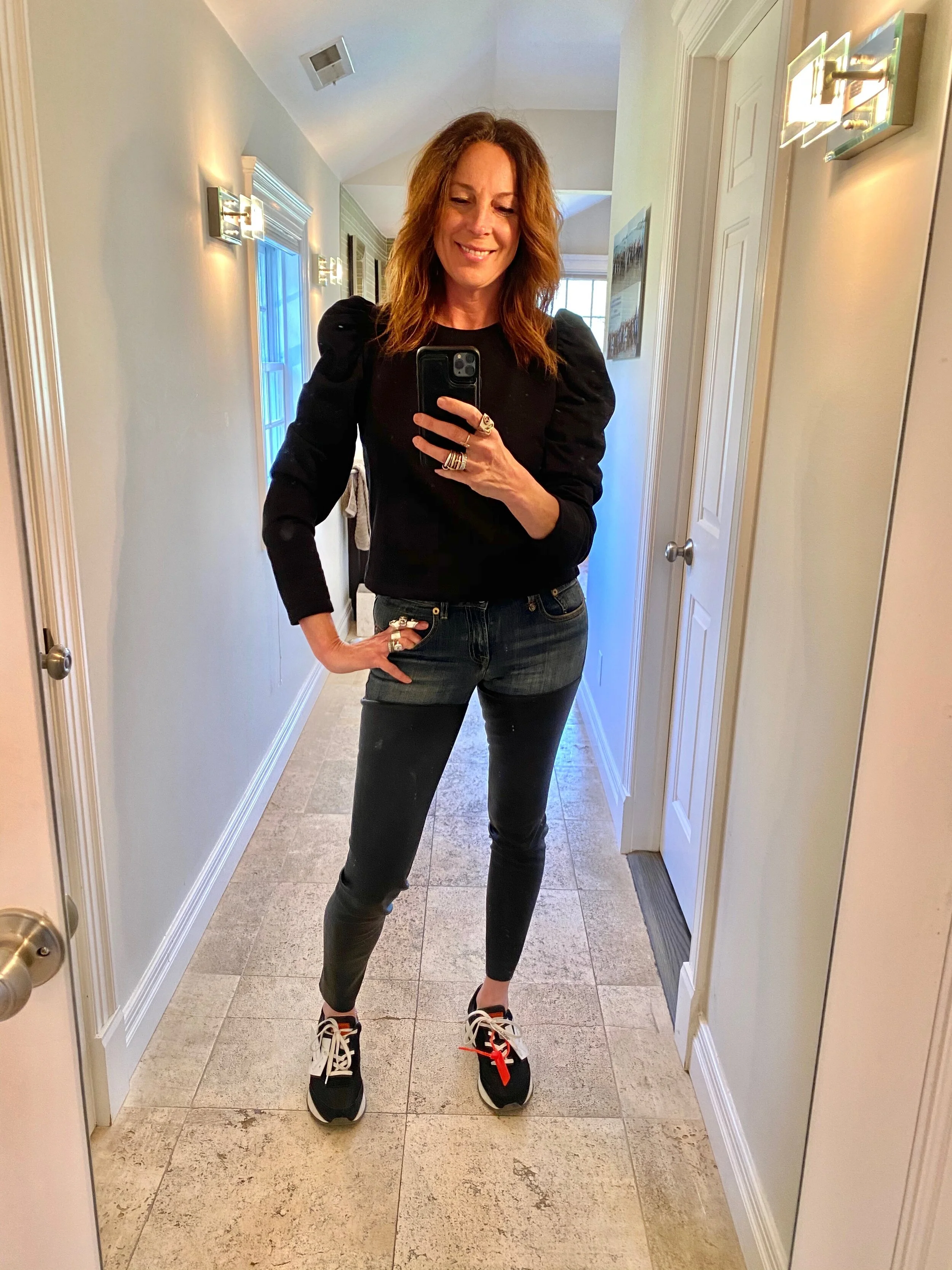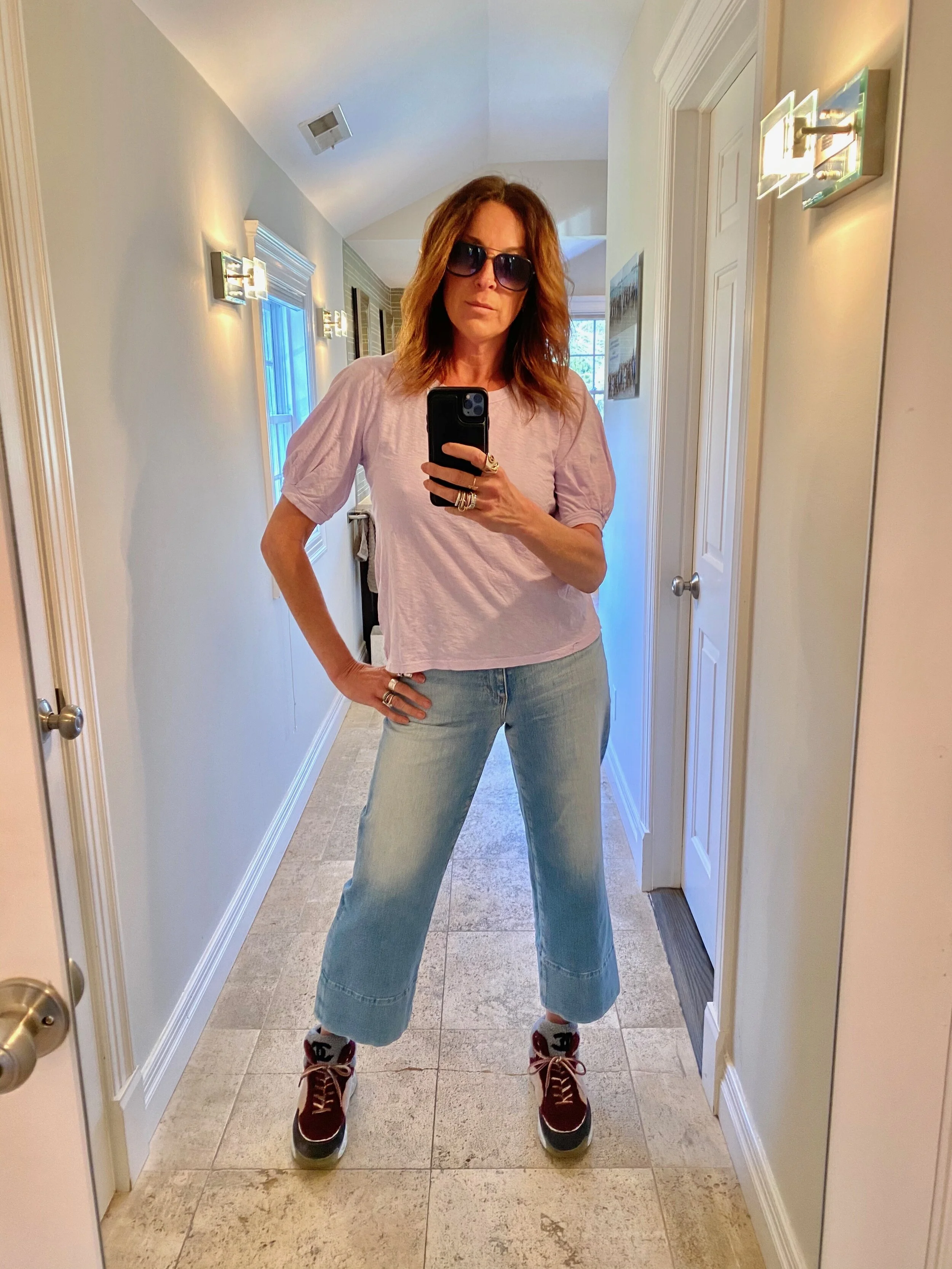 Reading magazines and spending a great deal of time in NY and LA showrooms for the last 5 years have allowed me a window into the trends for upcoming seasons. Typically, there is a color trend, a denim trend, a pattern trend, a skirt length trend (which my husband would always have me share with him as it has historically been a predictor of the rise and fall of the stock market), a sleeve trend, a shoe trend and a few others each season. Some trends come and go quickly. For those, I would either ignore them if I didn’t like them or would try to pick up something very inexpensive to satisfy the itch and continue to spend more of my clothing budget on wardrobe staples or timeless pieces. Sometimes, a trend keeps on trending and then I will usually incorporate this into my wardrobe. It took me years to find happiness in high-waisted jeans. For ever, I was only a low waist jean fan, (which I still wear, especially R13), and then moved up to a mid-rise (I am obsessed with Moussy! ) until I discovered high rise, wide leg jeans where I felt the proportions were right for me (and you you can see photographed in this style story). As I spent some more time in my closet and thought about a trend I have recently incorporated and also saw in showrooms for the Fall 2020 season, it was clearly the puffed sleeve. This will be out (and hopefully we will be out safely as well) in full force for fall sweaters, sweatshirts and more. I recently (pre-COVID-19) grabbed a simple lavender tee-shirt for the summer with a slightly puffy sleeve and a really beautiful boho white blouse. Over the winter, I found this sweatshirt at Zara with a puffed long sleeve that could take me through all of the seasons and then purchased a denim jacket with an exaggerated puffy shoulder and mid length sleeve. It’s fun to see this jacket mixed with a graphic tee or a sheer black blouse with a flouncy sleeve - taking older pieces and making them more fashion forward by layering them with a current trend. My advice is to go to stores like Zara or H&M for super trendy items, but only if they suit your personality or body type. On the other hand, it’s great to try new things - sometimes you’ll be pleasantly surprised - but always “trend lightly”.